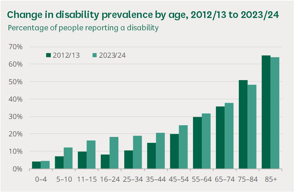 >The largest increases have been in people aged 16 to 24, among whom reported disability prevalence has more than doubled from 8% to 18%, and those aged 25 to 34 (from 11% to 19%)really boggles the noggin, does it not?