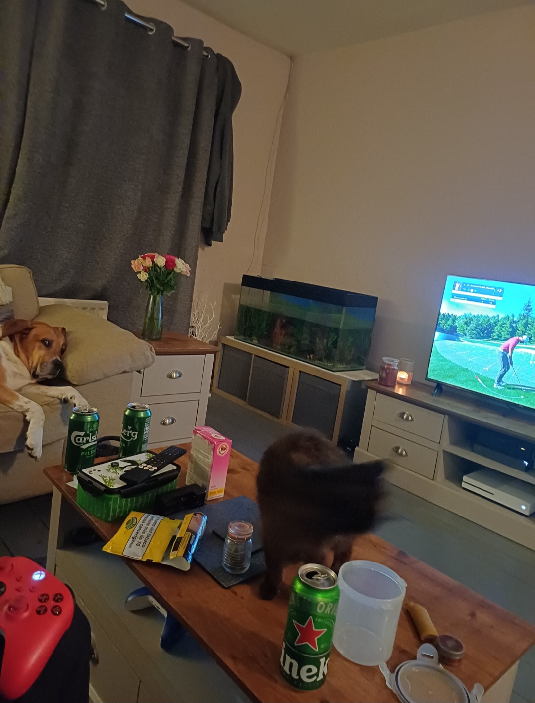 SeasideMARK looks over his big box of pop. What one you having? He making that risotto for dinner; he just visited Purbeck and Corfe Castle but that place is overrun with crackheads. He more interested in cracking that prison soon.