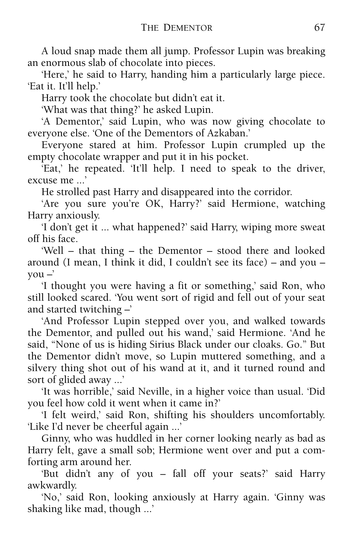 i think of these Dementors on drug withdrawals, sometimes. just pure depleted. wonder if that's where she was writing from.>'I felt weird,' said Ron, shifting his shoulders uncomfortably. 'Like I'd never be cheerful again...'dunno why they bully that Harry lad, though. EVERYONE has a rough time, and then they all act like Harry is a weirdo.