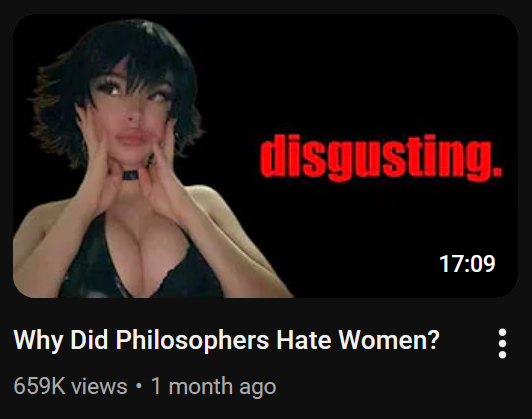 >>84000572That thumbnail is a good enough reason to hate women, honestly.