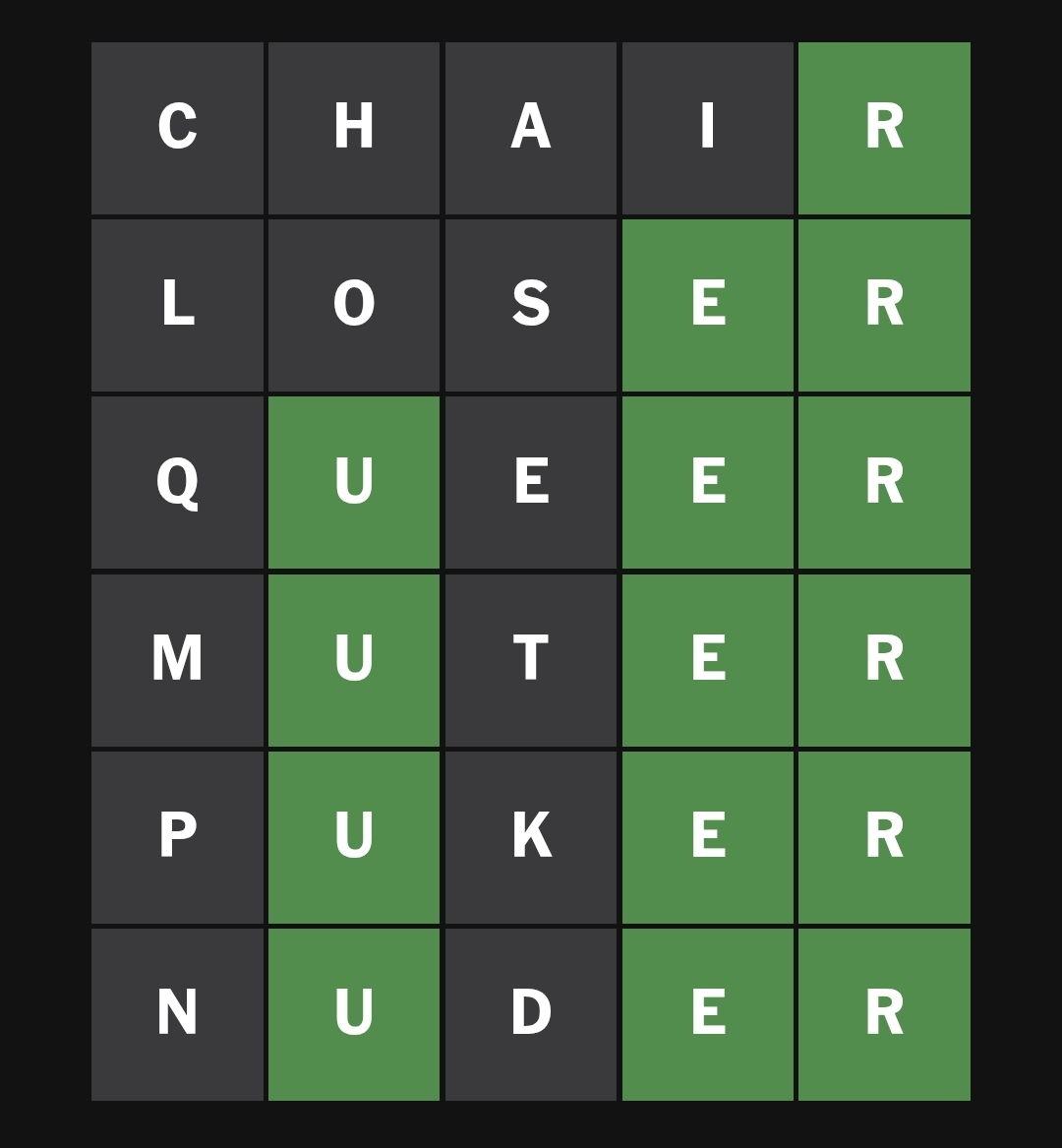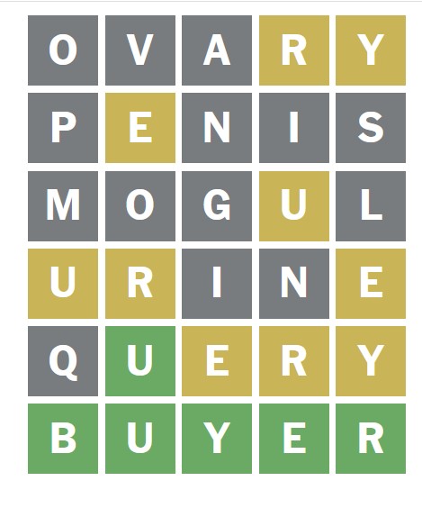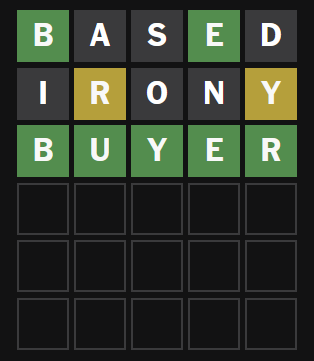 >>84003272i got it on 4th try, first word was "board", then brine, boxer and buyer