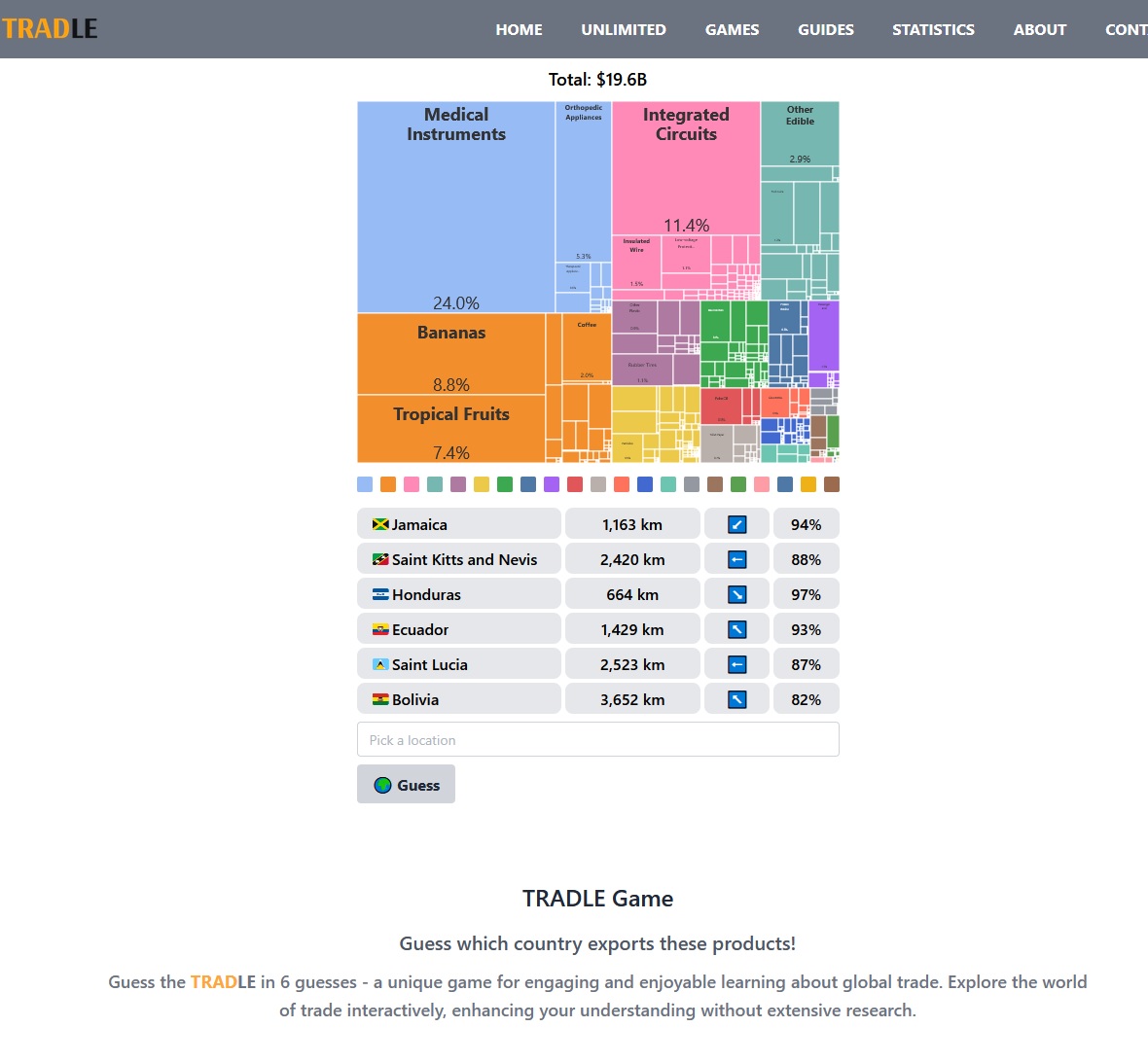 >>84003272So you know what I've gotten into recently? A wordle variant called Tradle, where you try and guess the country based on what their economy looks like. I play on self-imposed hard mode by not having a map open. I learned, from playing this game, that a lot of the smaller and poorer island nations have a lot of their economy made up of "medical equipment." Very interesting.