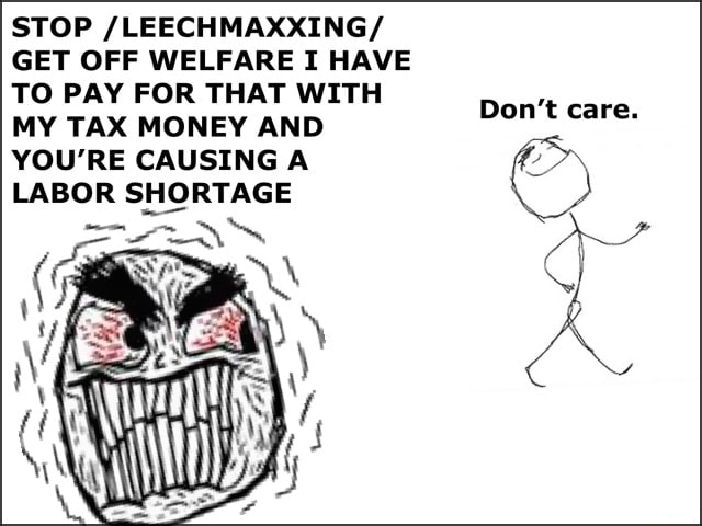 >>84013911>endless seethe over the fact that the neet gets everything that the wagie gets, without having to slave his entire life awayIf you were a human, and not a wageslave for Mr Finkelstein, you would understand the REAL downside of NEETing, which is the feeling of uselessness and lack of purpose. But wagies don't understand what purpose even is