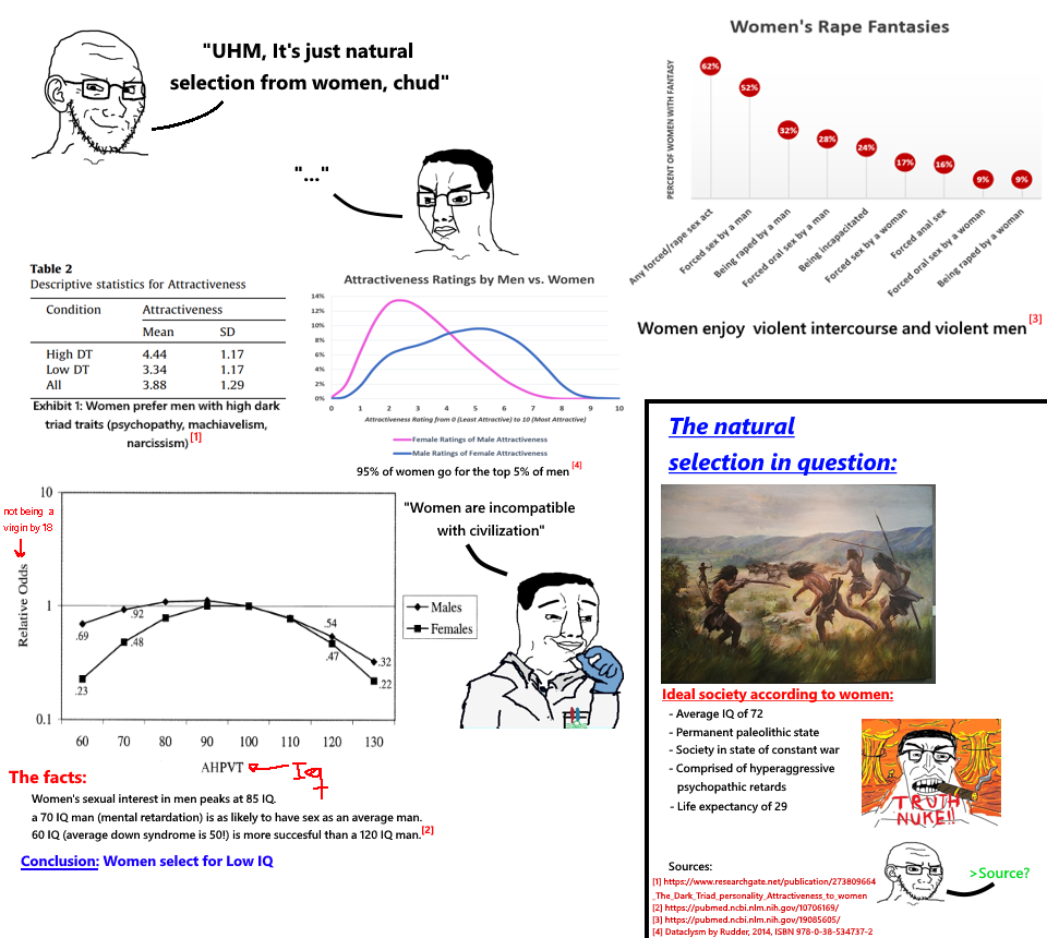 >>84017824>You do not understand female socialization, "give him a chance he isn't mean wtf are you uppity?" is a huge thing for women to groom us into being partners for fuglies.source?also i already explained female socialization to you.