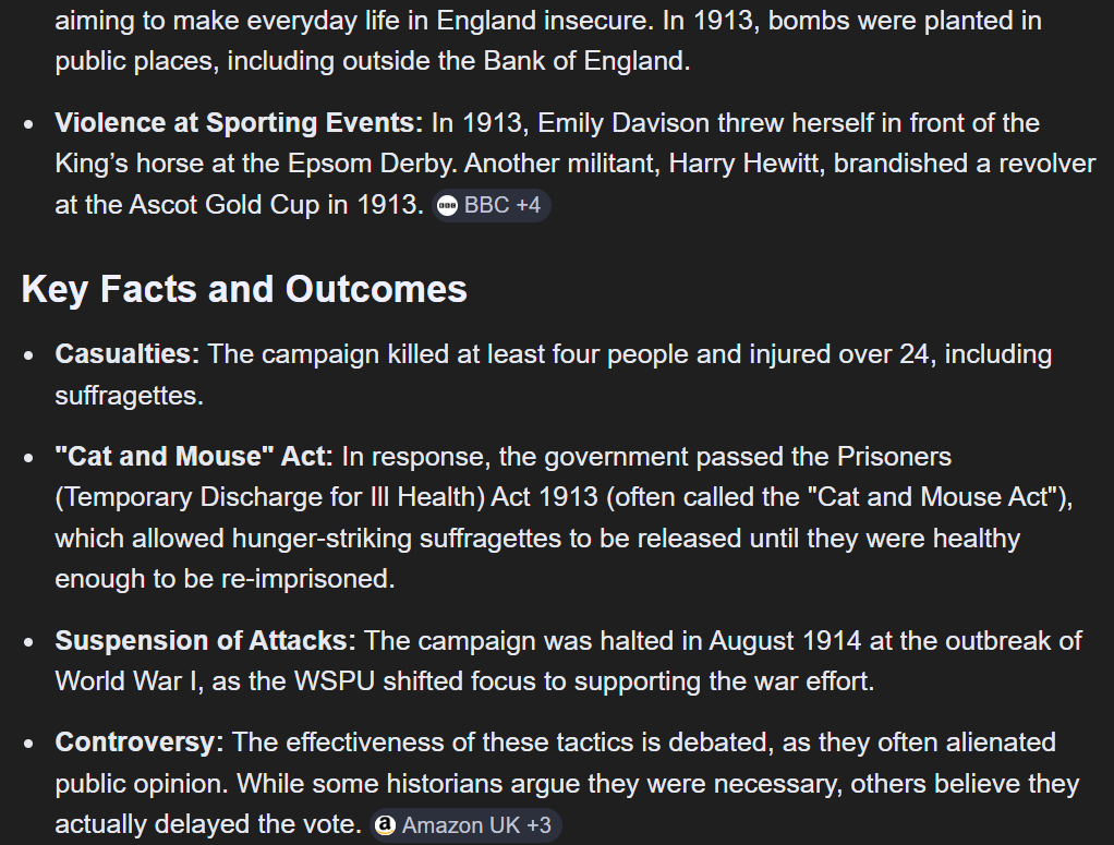 >>84070453fine i'll answer my own question since you're so lazy>googles itwow, your "terrorism" hurt other women, delayed the vote, got women re-imprisoned and took a backseat to something more important. am i supposed to be impressed? you also only managed to kill 4 people. that is just...painfully pathetic