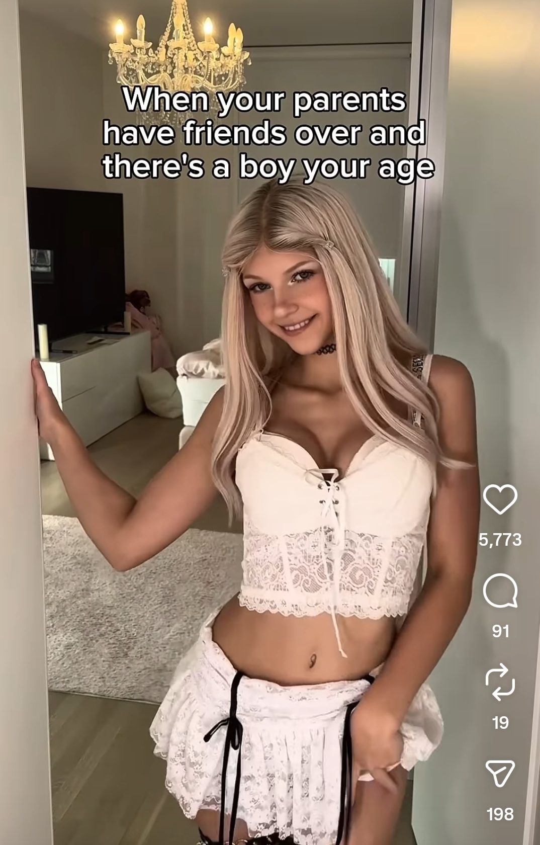 >>84083122All female sexuality is performative including this one.What she is looking for is affirmation of her attractiveness. She purposely sets up a scenario where sex is impossible because she wishes to seduce the boy and boost her ego without actually having to have sex with him.Narcissistic whore 101.