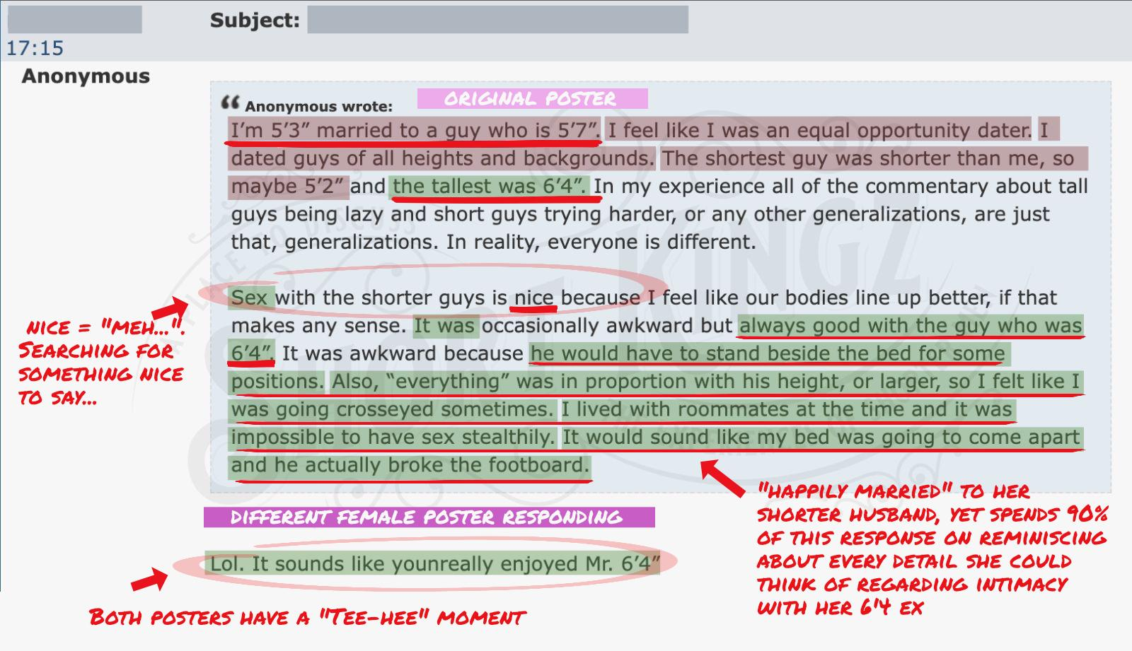 >>84083840I'd just like to interject and say that height isn't correlated to dick size. Source: I've had sex with some women that have been around and they all have told me I'm big at 7x5.6", and I'm short.End of intermission.