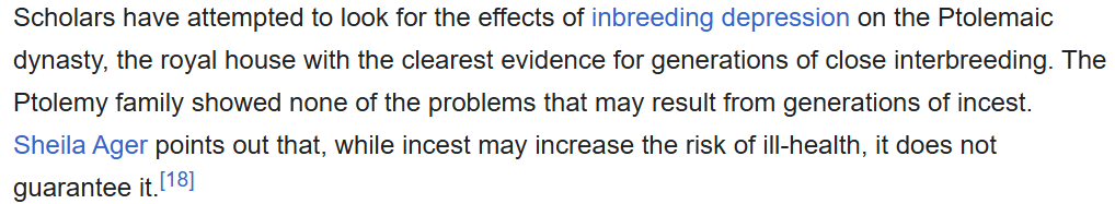 >>84131497Normalised is a big claim to make, egypt at one point saw ~20% of marriages between siblings but how much of that was encouraged by the ptolemies?