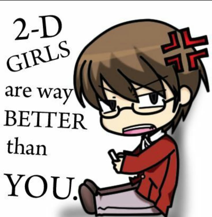 The only men ive ever truly had a crush on were all fictional. Most real men are obnoxious, disgusting, ugly, and mean. 2D men are superior