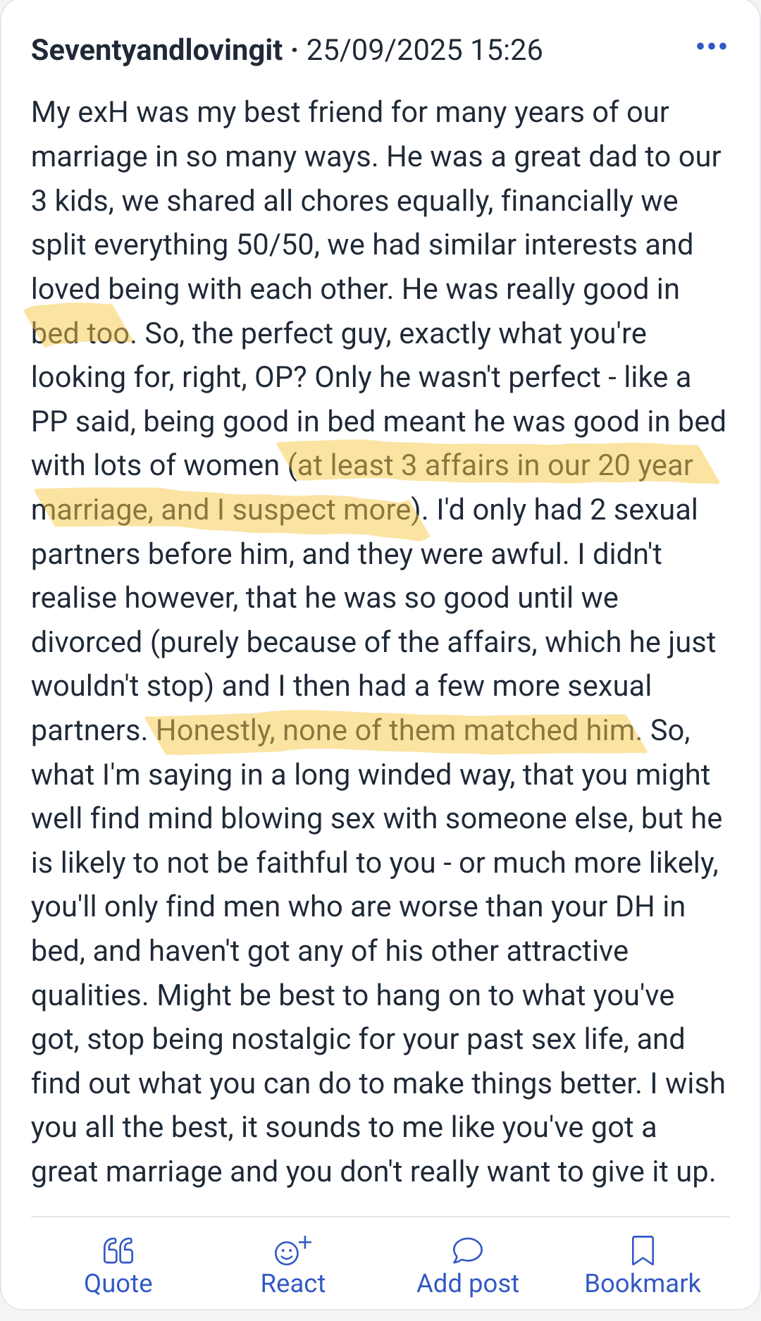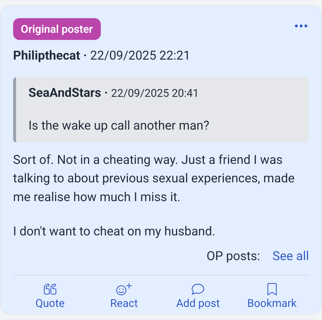 >>84212676what the fuck is this site bruh who tf uses mumsnet instead of reddit for this shithttps://www.mumsnet.com/talk/am_i_being_unreasonable/5415205-bad-sex-in-an-otherwise-good-marriage