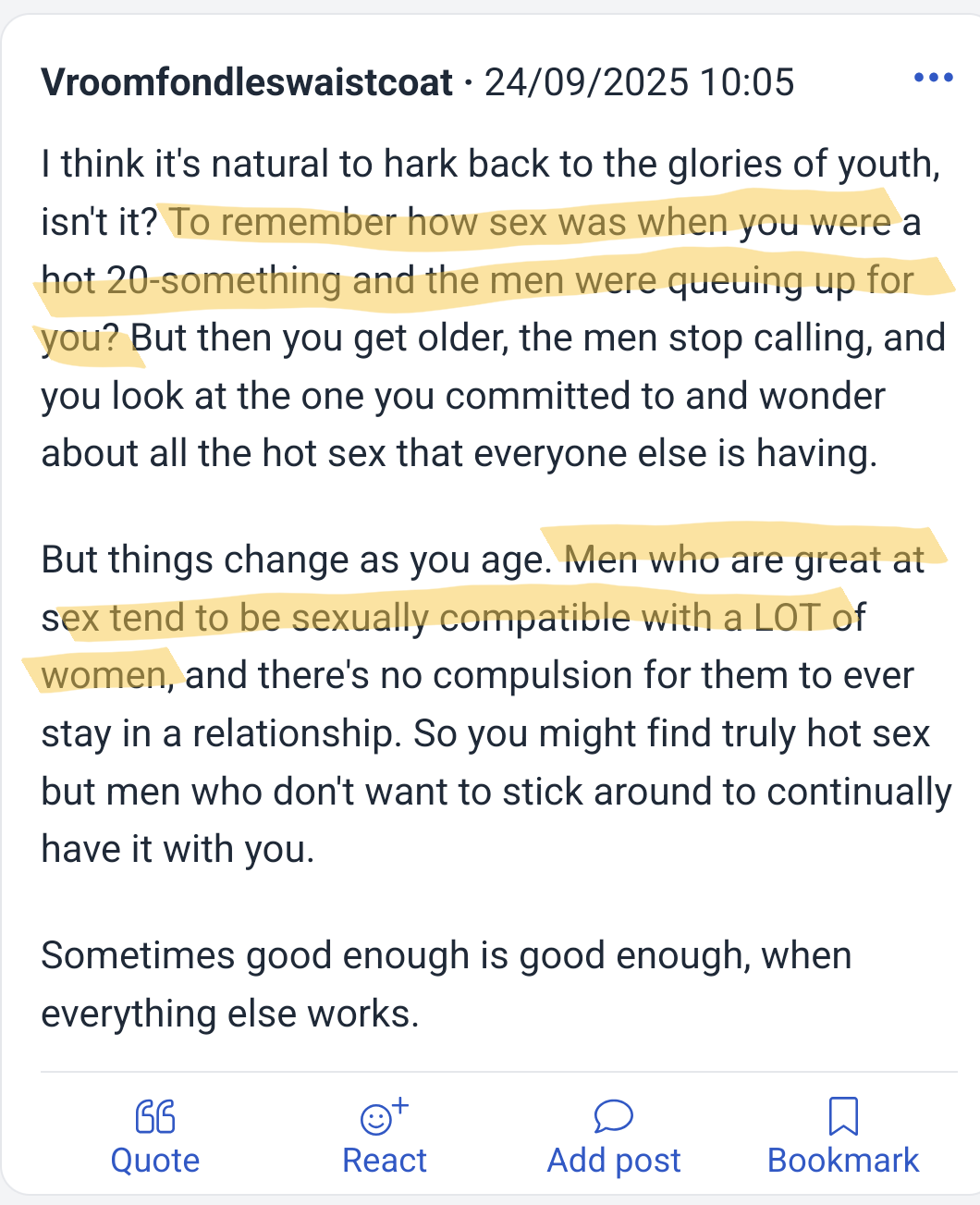 70 year old woman chimes in with a vintage blackpill