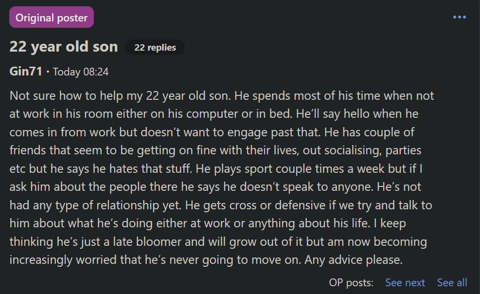>>84212676mumsnet on /r9k/ lol