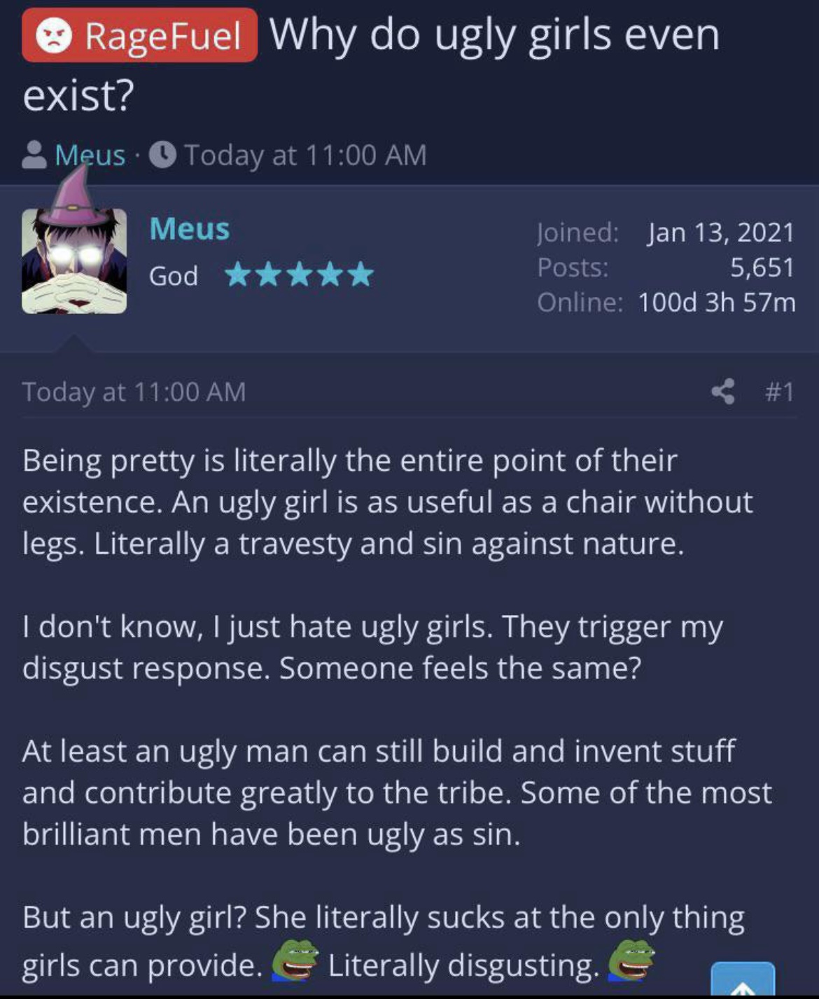 >>84227569incels hate ugly girls too.
