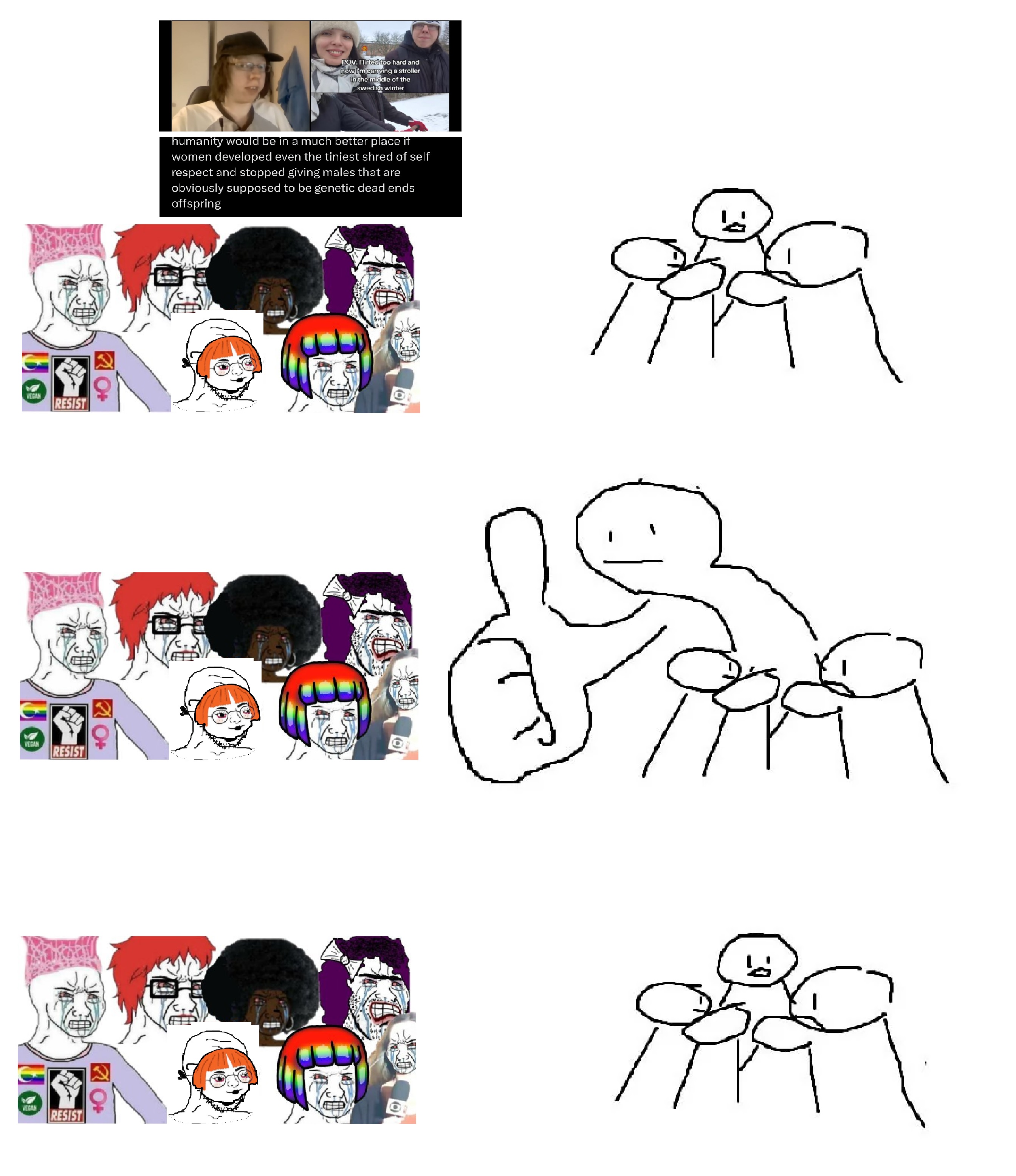 >>84229701I feel like as a white race we're demoralized because 1 there's the self hating group you know, the libtard dyed hair OMG baha all us white people bad for something our ancestors did 400 years ago for social points and then there's the chuds who think our inventions and civilizations aren't appreciated enough and thinking they are all crumbling muh le west has fallen omg we need to save the race then there's the white men like me who are just waiting to die or feel horny again