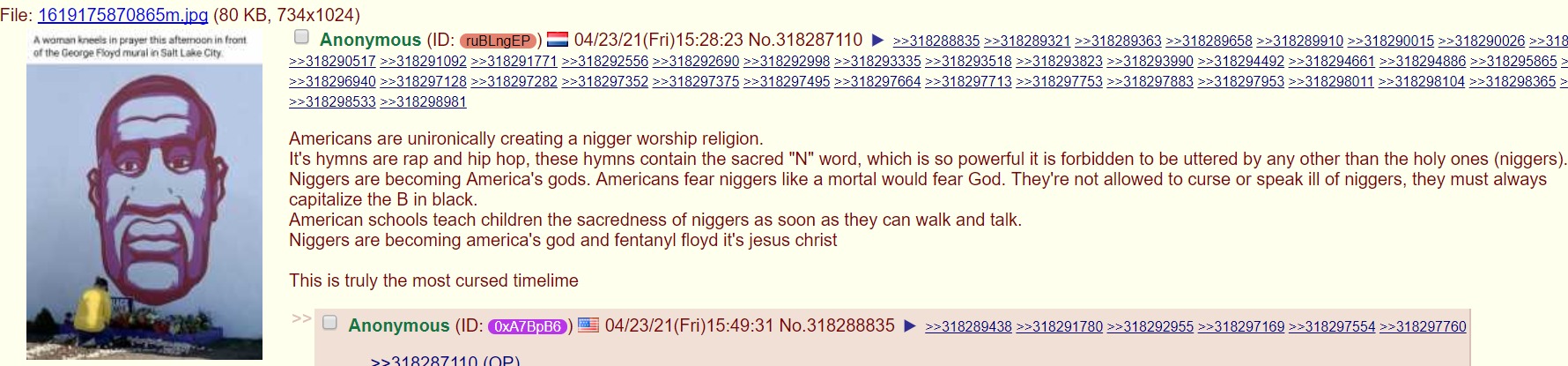 >>84230785>>84233064There is an untranslated book by Jules Monnerot (ironically a Black far-right fascist and former Communist from France in the 20th century) that goes into the idea of the Secular Religion which appeared with the fall of Christianity and the rise of secular humanism. What you're seeing is very literally a form of religion, and it can be critiqued not only in its aesthetic form (nigger worship vs. "climate fundamentalism" vs. Communism) but radically at the point from which it grows (i.e., in James Fitzgerald Stephen's critique of Liberal ethics).But it is literally a religion, and you can trace the things which are said, even if true (e.g., the climate is being destroyed), to the dogmatic religious axioms of the Leftist (i.e., one has an obligation to ensure equality or least harm for the greatest number). I personally believe in environmentalism by the way, I am just explaining one small part of the secular religion.