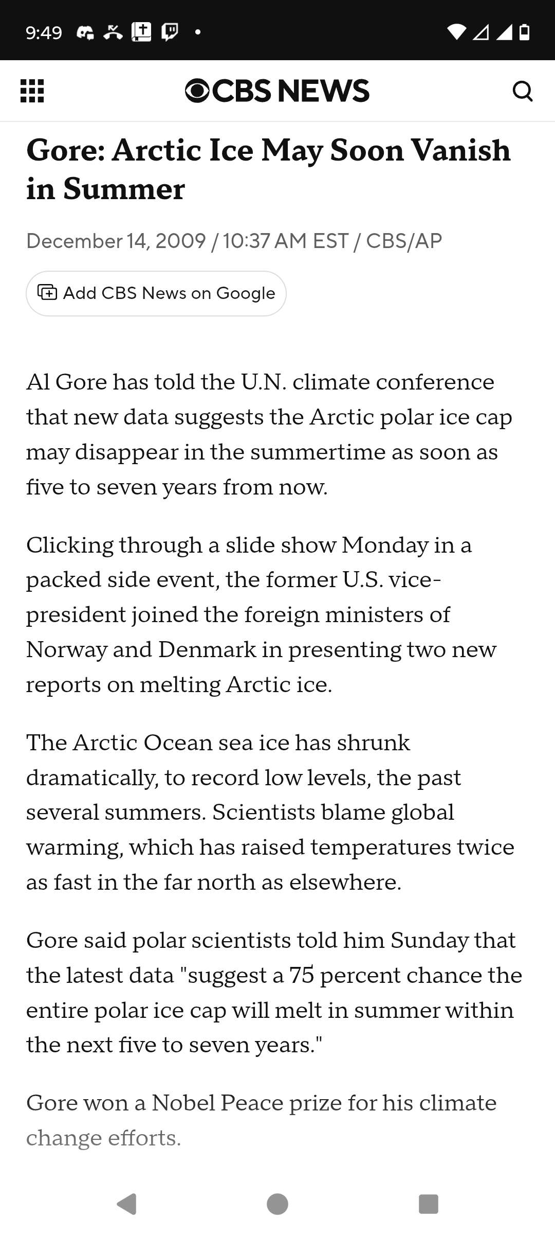 >>84233303>Al Gorehe isn't a scientist, he's a sensationalist former politician. No serious scientist said we'd submerged by now, inundation will be gradual and take place in 100-200 years from now at the current rate (if it somehow doesn't accelerate), with some places more prone depending on their current ground/sea level.