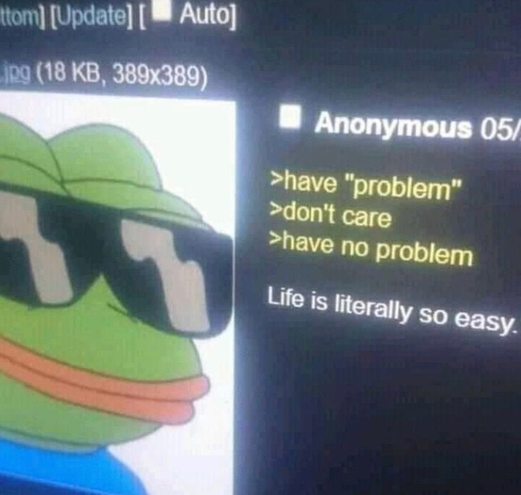 You need this pepe and nothing else. When you understand that you get to choose what makes you suffer or not suffer, none of this means anything anymore.