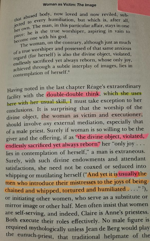 >>84234135Here's a page of a feminist explaining that sometimes texts are written with "double double think".She also talks about an eternal sacrifice and the meaning of that is really sinister yet a bit difficult to explain.