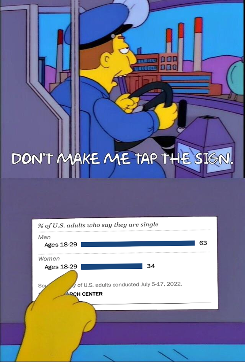 >>84265745You're forgetting that most "single" men identify as LGBT.