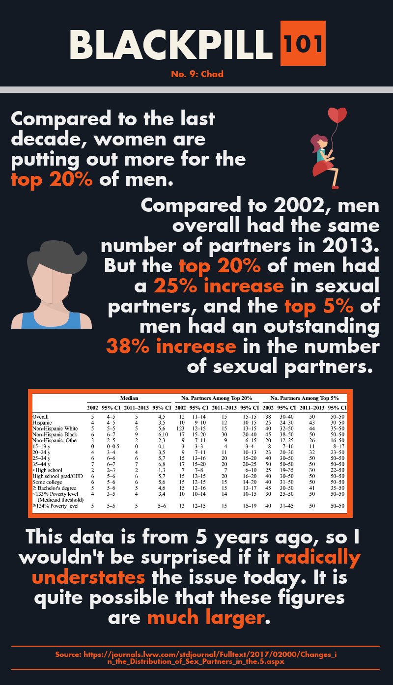 >Lul. Incels will never be anything but a tiny minority.Wrong, our numbers are getting bigger all the time.It's now a generational thing too. Many Zoomer males are incel, but we mid-era Millennials got shafted too.Many of us are indeed those normies who have recently been left behind, as the tide of foid standards rises over their head. Then they are in denial about their dry-streak going into months and then years. Given our constant bad press (victim blaming), normiecels don't exactly embrace the incel tag, though they will invariably get Red Pilled or Black Pilled. Male inceldom will only get worse until foids are cut off from their online and infinite access to Chad, and are obliged to fuck their looks-matches again.