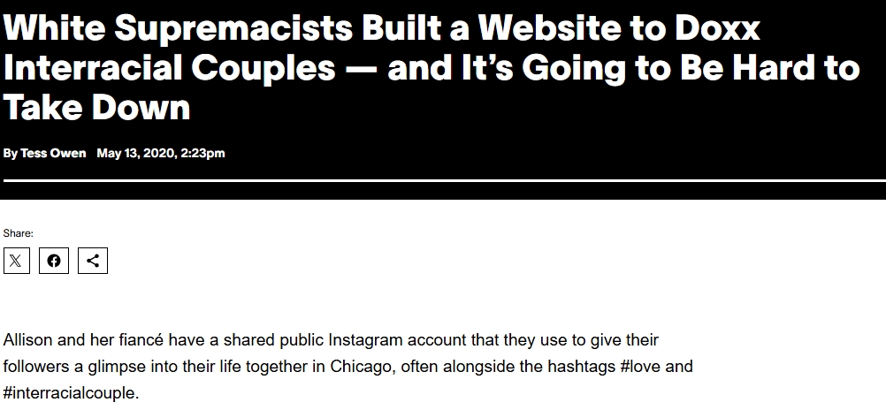 >>84258398ThisOnly white men have made terms to seethe at their women for dating outside their race and have made websites to dox white women for dating out or threatened to kill them.