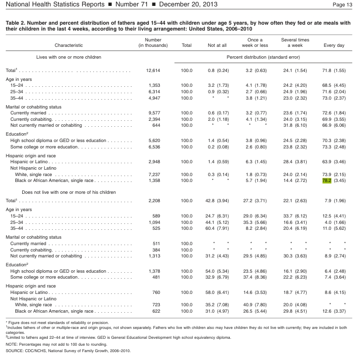 >>84258833>over half of black children are fatherless False. CDC put a stat stating most black kids live in split parent single households which is mis-interpreted as fatherless households. Black fathers are actually quite involved according to CDC. >WMBFIs also so rare and non-existent i'm not even going to address it lol. That stat was also debunked and is based on a 1980's survey.You're basically just shifting the goalpost after losing every argument lulBut dont you think its kinda sad how white males have become so undesirable that you can't even get your own women and have to pretend your taking everyone elses(As your population continues decreasing)? I'm not seeing the future plan here lol.