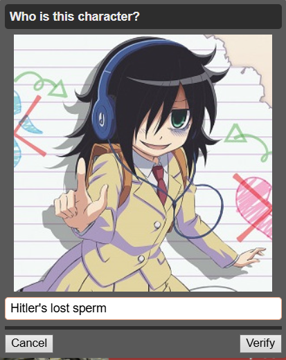 >>84268548A bit tame this year, the captcha system has been changed to guess the anime or meme character.