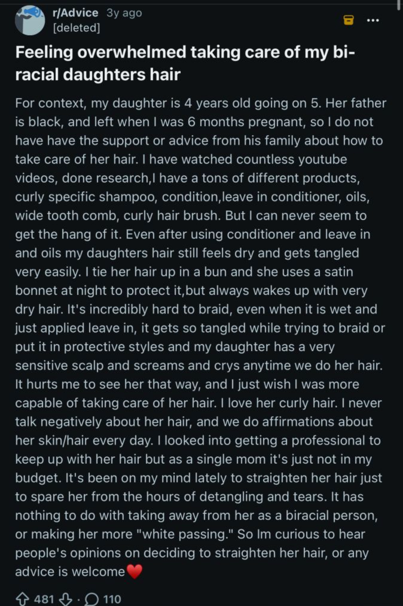 >be me>look at my hair>giant matted mess>need to basically excavate it to make myself look humanI would not wish halfricanism on anyone