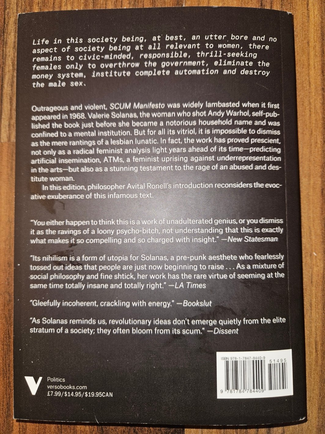 >>84264637By the way this Book (it's "scum manifesto" by Valeria Solanos) has praising blurbs by major newspapers like Guardian and LA Times.