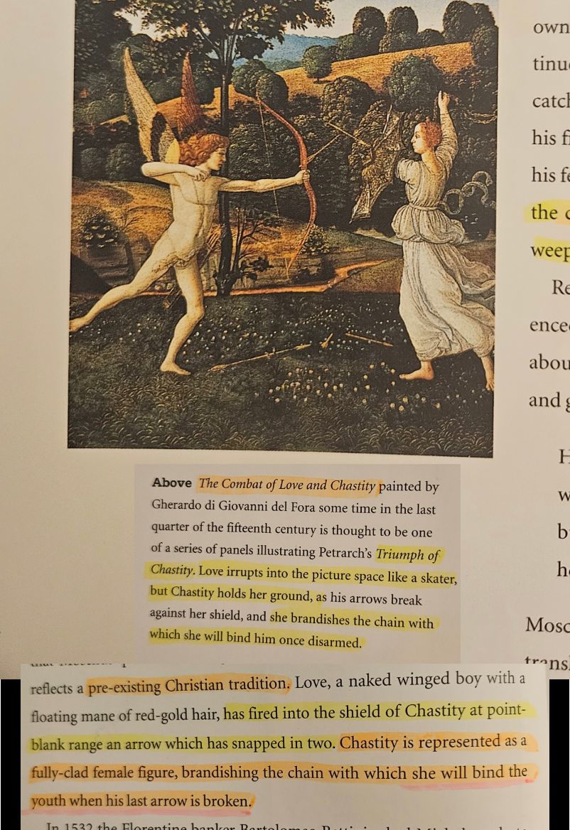 >>84265137Women study Art because it gives them insight how to force men into submission.Here's an example: a feminist studies "Chastity" forcing "Love" into submission. Chastity is fully clothed and breaks the last arrow of "love".In other words: Older men are more desperate to agree to things than younger men. (that's part of the reason why adolescence is delayed in our society)