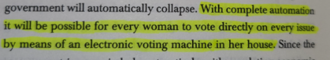 >>84266043No. But in that particular book she writes society can be automated very quickly once there's a financial incentive.She published this book 1967 - when most people still thought FULL AUTOMATION wasn't possible or still very off into future (like people still believed Ai will never be able to automate art).