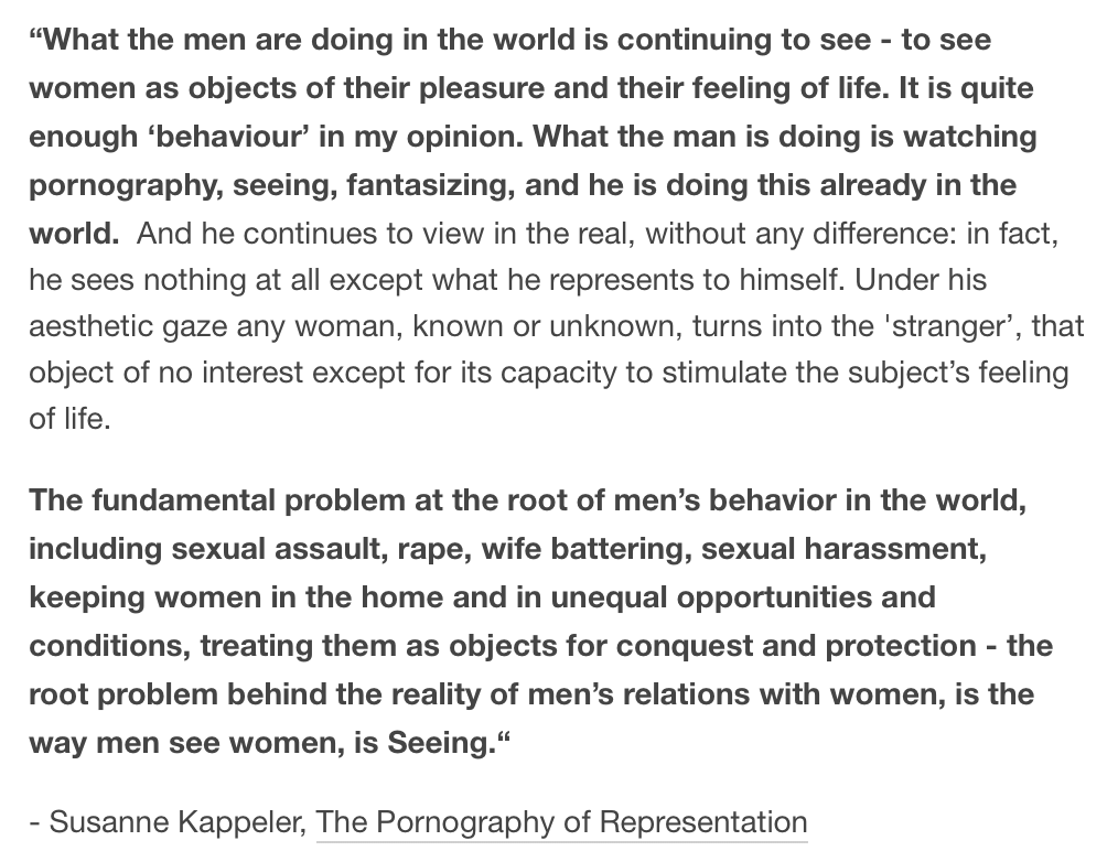 >>84291601that's from the book "the pornography of representation" by susanna kappeler, not a paper.>>84291628>>84291746>>84291768>>84291931yeah, that's why academic worship is being questioned.