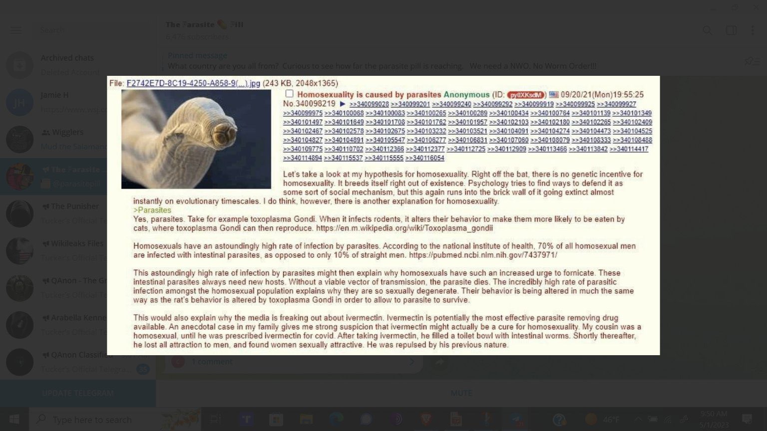 >>84297800>yeah man, 70% of gay men have parasites and that's why they are gay>Yeah, let's ignore that nobody talks about it outside this fucking dying website that is 4chan>yeah, let's ignore that nobody has reported being healed from these parasites and gayness on 4chan>>84299822To be honest I did read on gay forums that some of them are very loose here, and some do have problems with incontinence. That is a better angle of criticism of gayness than muh worms.You can get even better angle if you go to r/askgaybros, because you will see recomendations of what vaccines to take just to not get sick from sex, lol.