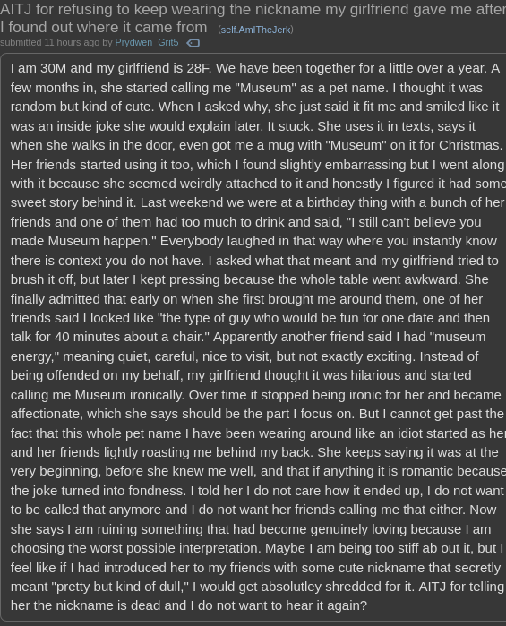 >>84300657>"boyfriend dick" but for personalityOh no no no museum bros...