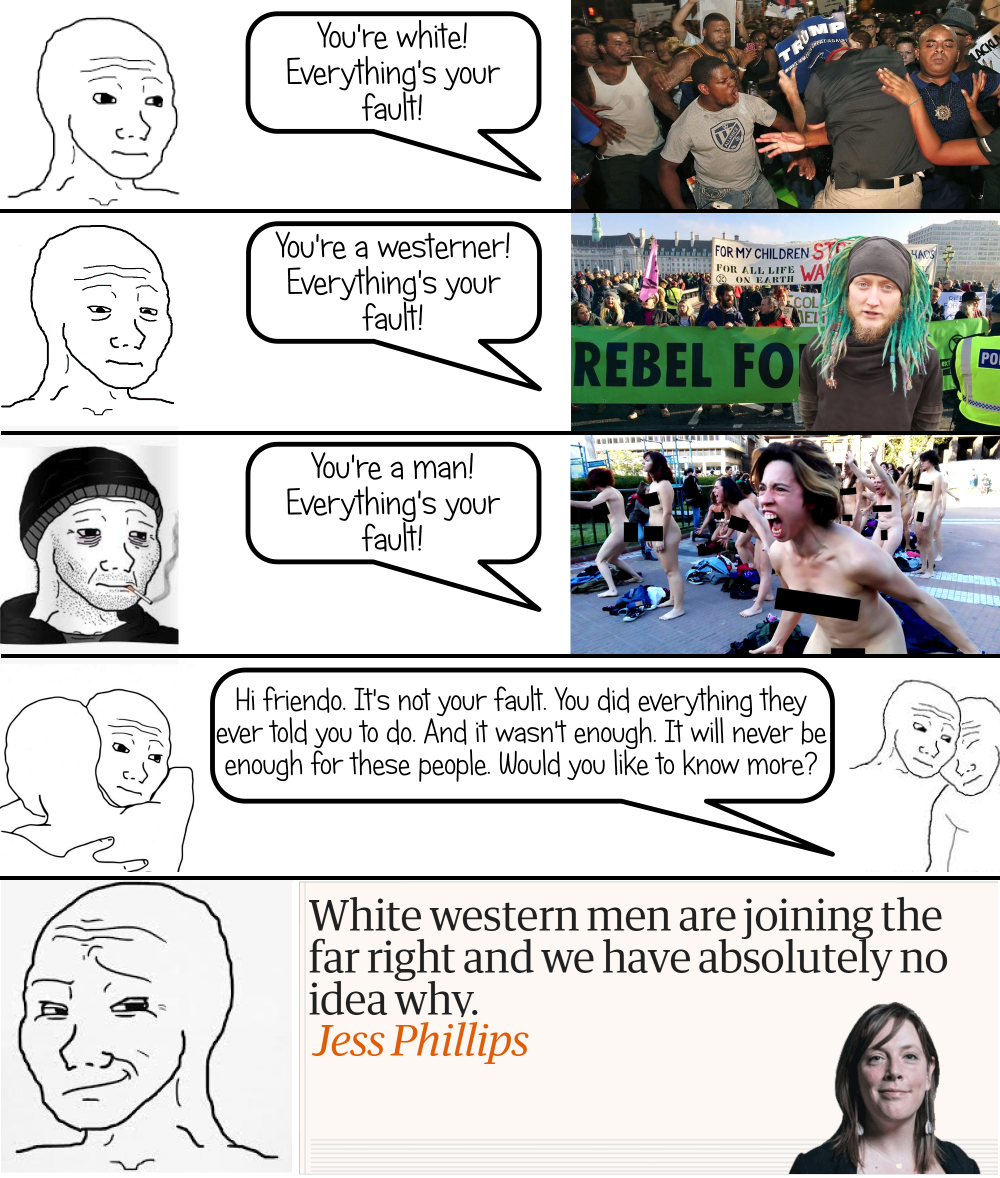 >>84304120>>84304259whites are the most privileged and rich race, they will need to suffer for socialism. It's the whites who are at the front of conservative and racist movements against the workers.
