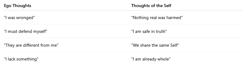 You are not being asked to become something new.You are being asked to stop using thoughts that are not yours.The ego's thoughts feel personal, but they are learned and unstable.The Self's Thoughts feel impersonal, but they are true and eternal.
