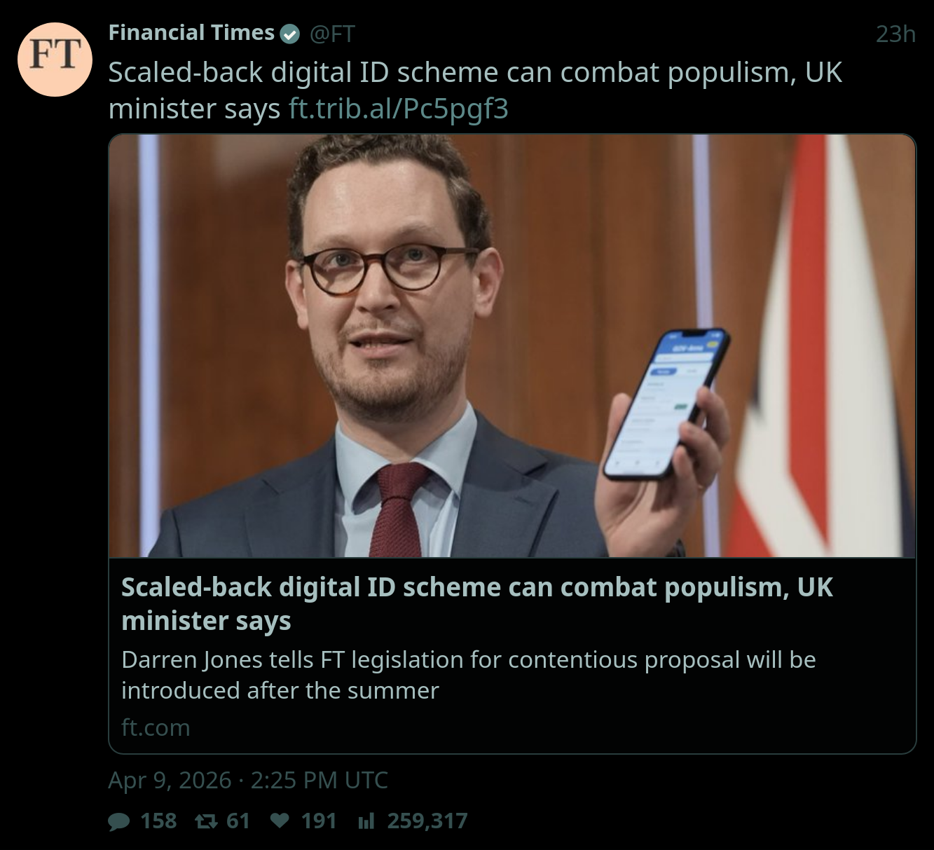 UK now has flatter wage distribution than communist Soviet Union. Take home for minimum wage: 22,555. Take home for 100k: 68,558. Net ratio of 3.04:1, whereas the USSR never dipped below 5:1. That means the difference between minimum wage and a top 5% earner is about 3x. (actually a bit worse since someone earning 100k will almost certainly have student loans too)Soviet minimum wage peaked at 60% of median income. We've just hit 66% lol.Britain is nominally capitalist but functionally communist. Compare with somewhere like China which is nominally communist but functionally capitalist. Really at this point I wouldn't be surprised if they just tried to mandate all wages by central committee. Cut out the middle man as it were, I mean really why not at this stage?
