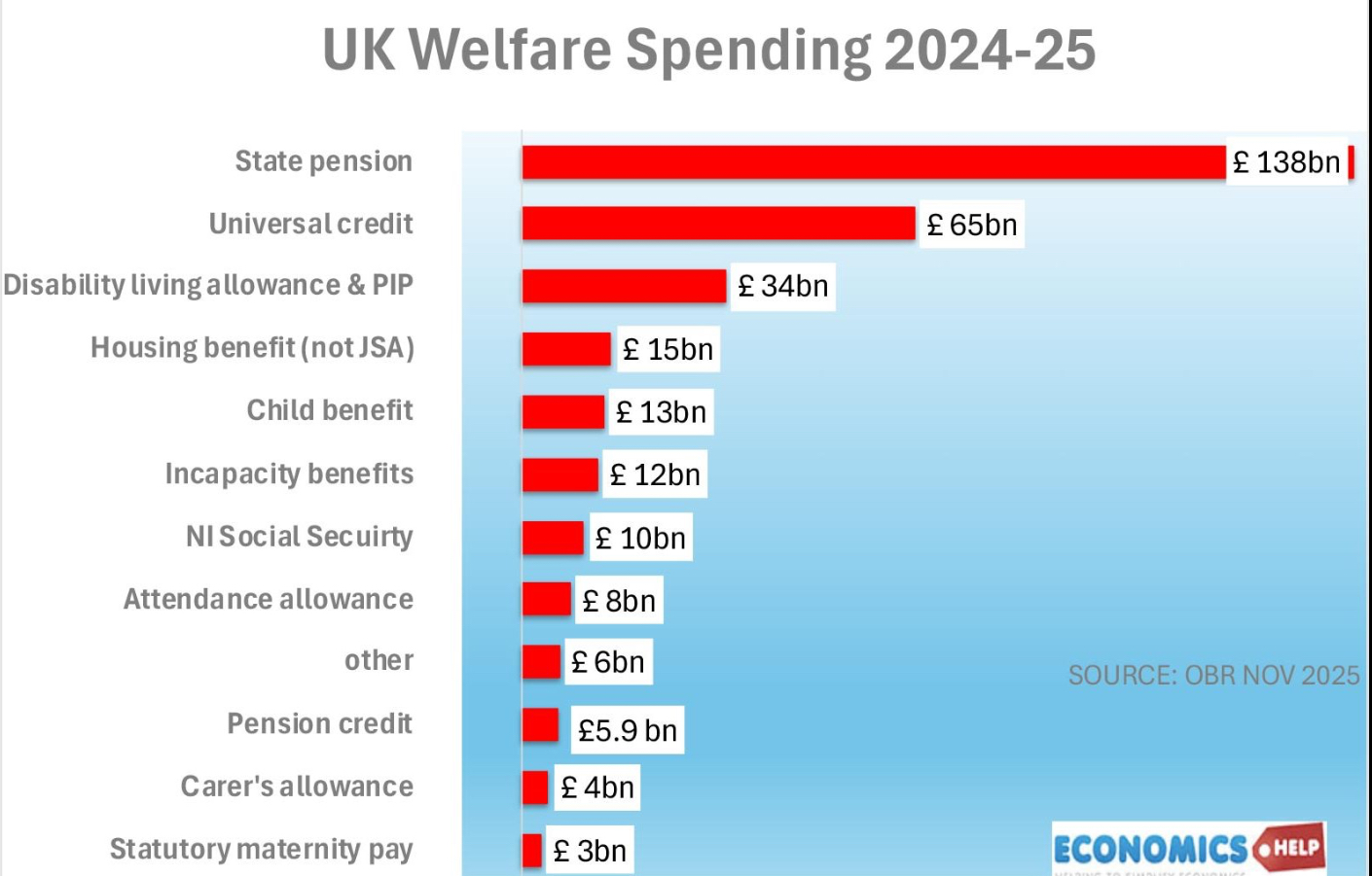 >>84343699Also what we are being told about what we spend on welfare in line with other countries is completely untrue. The overwhelming majority of welfare spending is spent on pensions and when you look at the numbers UC and PIP spending isn't that muchYou cannot criticise welfare spending while not commenting on pensions when it's in the same budget, but you won't hear that on GBeebies and Tory rags like the telegraph and the daily mail. (2/3)