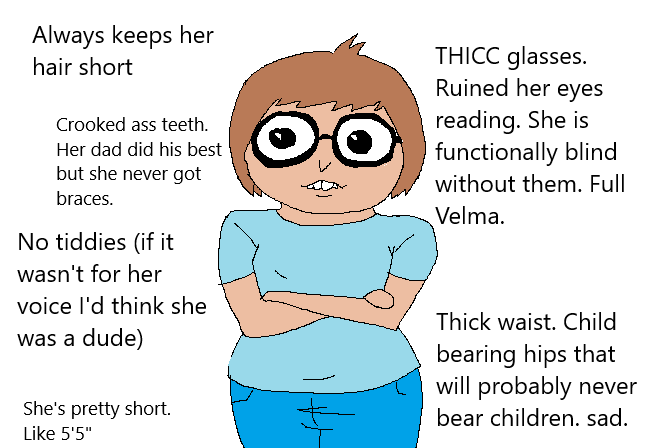 Also, I'd really like it if she had a bigger chest. Even a modest B cup. She's practically flat as a board. Worse yet, I'd joked as much about this characteristic of hers (again, I didn't view her as a romantic option when I did). She didn't get offended, though; she poked fun back at me. I've poked fun at her appearance on several occasions, not to be mean-spirited, but because that's the verbal jousting we enjoy. If I were to come around to her now, the venom she could employ - I would be dead before I hit the ground. She knows I'm a louse, a devil, and a trickster, as I've told her as much. She could wield the truth against me so that I would be undone by her tongue (and not in a way I'd favor).