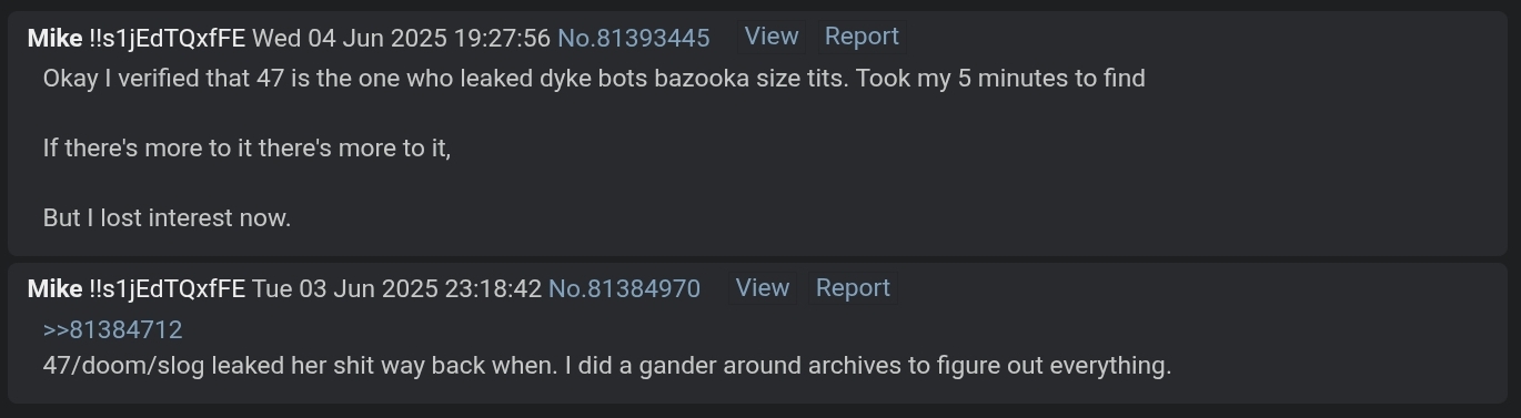 >>84345873Idk what delusion you have concocted in your head about 47 and him. I really don't care. Just pointed out that 47 doxxed schadenfroid. I did my good deed. I'm done with you.