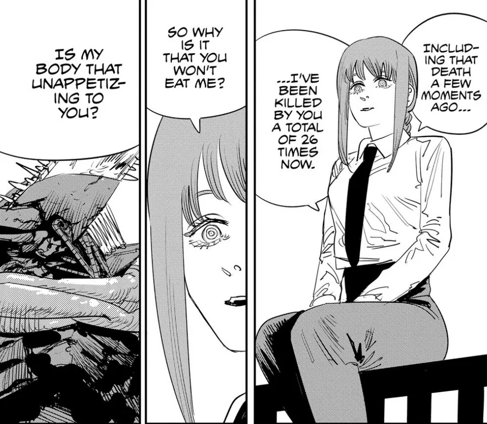 >>84375698She wanted Chainsaw man to kill and eat her, because she was that obsessed with him.