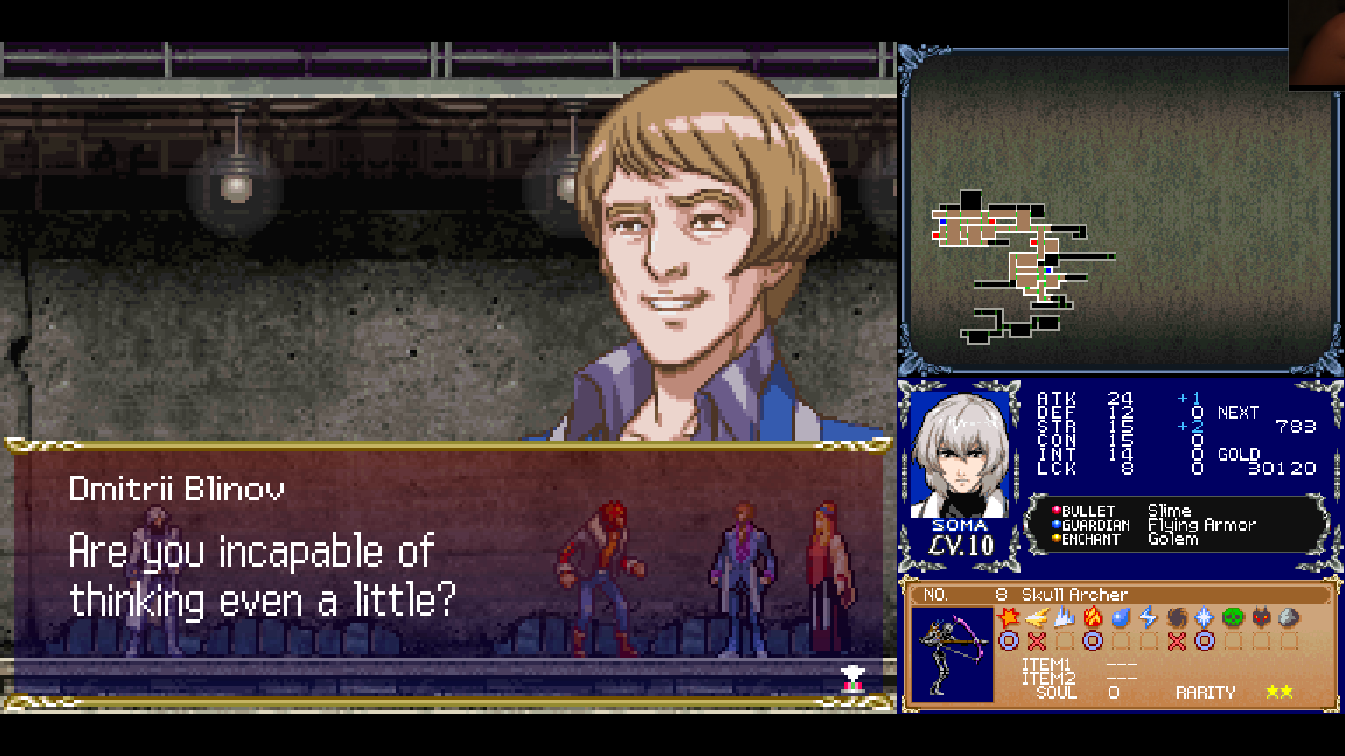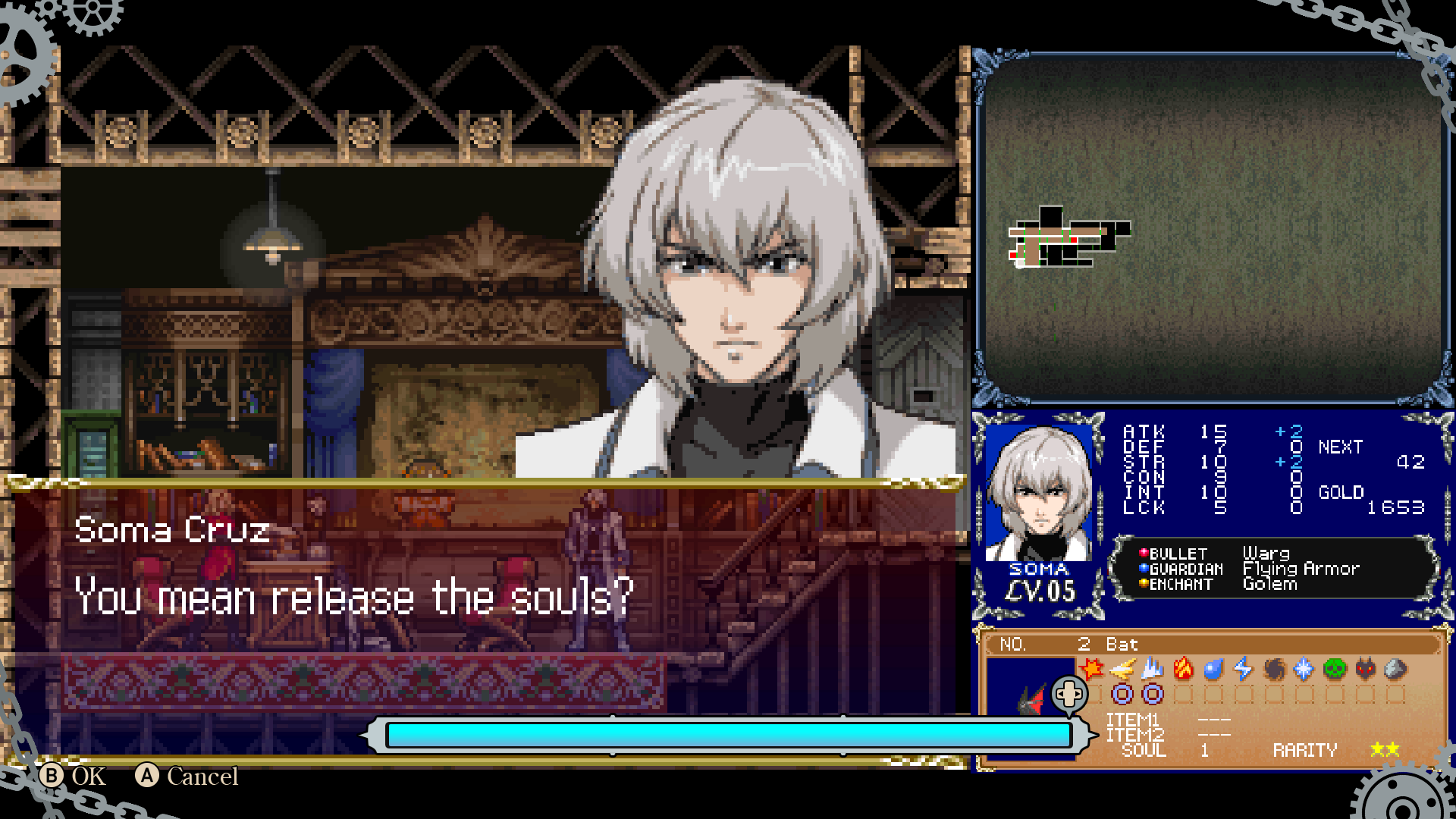 Dawn of Sorrow was a mistake. There was nothing wrong with the ending to Aria of Sorrow. Now make the Demon Castle War of 1999, Konami.