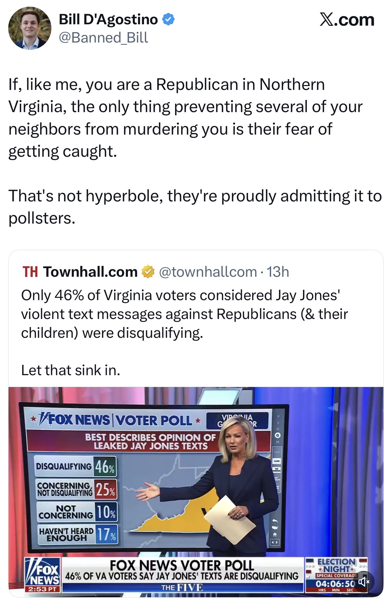 I went to go vote yesterday on the Virginia redistributing referendum. The democrats wanted to redraw the lines to give democrats more seats in congress, after our new governor promised not to do that all while she was running. I knew it was probably going to pass, which it did, but I did my duty to go vote against it anyway because there's no other way for me to stop it. At my polling place, every year the Democrats will have a little table set up outside with information and stuff. There was a girl there yesterday, looked college age, very normal and pretty. I considered striking up a conversation at their table. I think about politics a lot, and I'm sure she does too. I thought about maybe having a discussion about why I'm voting the way I am, why I have a lot of problems with Republicans but choose to vote for them over Democrats. Maybe she could hear what I think, I could hear what she thinks, and maybe we'd both be better off. But then I realized, she'd probably celebrate if I was murdered. A young woman, heavy into democratic politics. What are the odds that she celebrated Charlie Kirk's murder? Gotta be 60% at least. I'm sure my views were close enough to Charlie's that however she felt about Charlie's death, she'd feel the same about mine. Or maybe she'd hate me more because of my libertarian views. I want to eliminate all welfare, basically all government departments, I want to abolish public schools, and abolish all taxation. She'd probably be doing cartwheels down the street if there was a video of me getting shot. So I didn't talk to her. I just went home. Leftists are so evil.