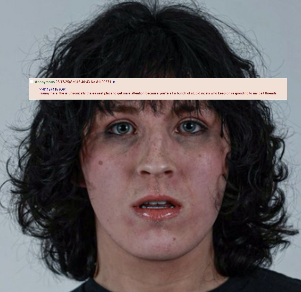 >>84430549>>84430561All anti-incel posts are made by trolling trannies -- this was discovered and confirmed years ago and we have to constantly stem the tide of them, like weeds or pests, with this meme.Remind anyone trying to shit on incels that they're tranny brothers already confessed who they are.