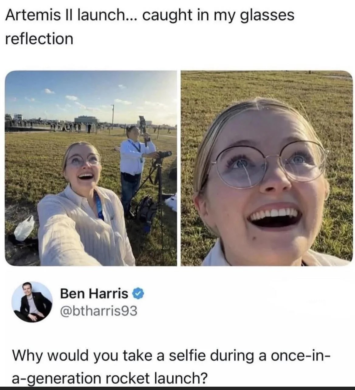 >>84433953OMG the rocket launch was so epic look how happy (( I )) was looking at it, chud, it's like someone took this photo of ME while I was so carefree, except you can see my hand, LOOK AT ME