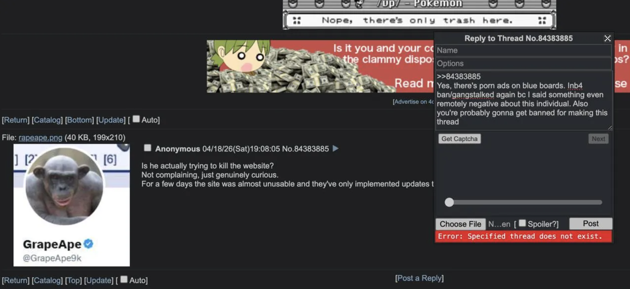Oh hey this is related to my other thread. There's a website you can post and it'll instantly block and give you a 30 day ban, it's the 4chan proxy site whatever it's called.