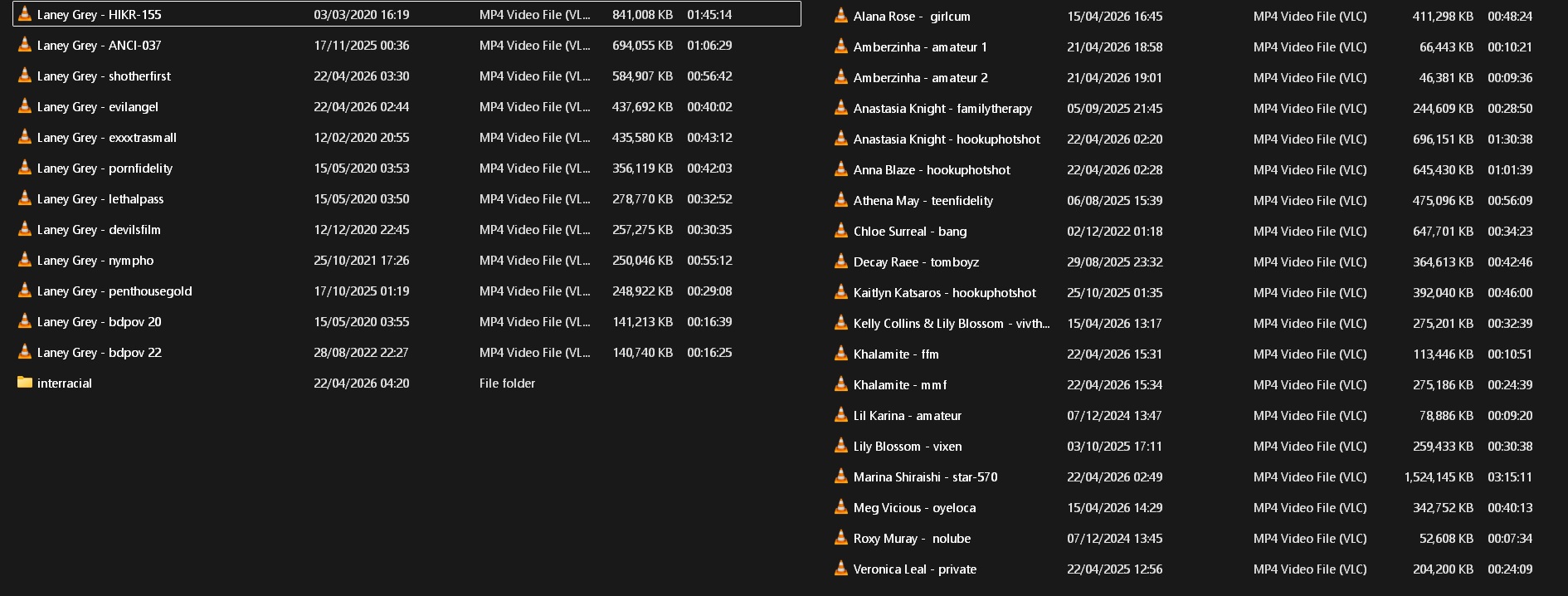 closest i have to that is one WMAF (lil karina, downloaded from pornhub), white guys fucking chloe surreal (hapa) and some latinas (amberzinha, meg vicious) and two JAVs with laney grey in them (AMWF). most WMAF porn is pretty bad honestly