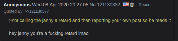 i report shit that would get people actually in trouble or the site taken down. or selfies on this board.otherwise people can fight to the death for what posts float to the top, as it should be in a meritocracy. you arent supposed to announce reports anyway, but i find reporting a post and then sticking around to mock the op to draw attention and for giggles gets it taken care of quickly.>>84446228>and they can suck my fat dick by the way for how theyve treated me over the years.now what did they possibly do to you, anon? dont report in the irc btw they will immediately ban you for it so as not to get flooded. >>84445458>>84445558kekd
