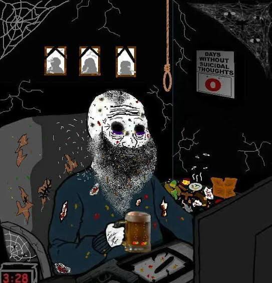 >>84446689>>get to your 30spushing four oh>>friends are all goneI quit social circle at like 15 when I dropped out of hs type shit>>replaced by annoying coworkerskind of back and forth but never had a real job so nothing consistent yeah>>too poor to traveltrue not a job or even good job>>too old to even try datingthis might be a mess havent tried but also my libido is as low as its ever been im cookednot even remotely comparable or enough to give me drive to try to get bitcheslike dead in comparisonmaybe i need to change lifestyle factors because holy shit im feeling it>>memes and youtube content are no longer relatable friend group contenti mean everything is going to shit maybe you just watch the retarded shit>>only play pve or single player gamesbased i guess>I don't really know what I am supposed to do anymore.on my agenda is getting education/job/business/investment into financial indepedence, if if fail, i failthat's all there really iswondering how much energy i have to attempt it though, i might just burn out and not have it in me now, fatigeud tired old>My friends wives don't let them have fun anymore.i litearlly know no body who has a wife or even a relationship, know as in my friend