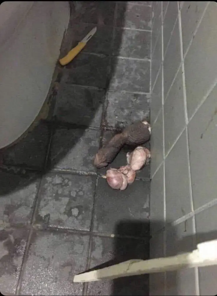>>84446981Not enough blood. I'd be most suspicious about who tf leaves this shit as a prank/seriously concerned that someone is carrying around a freshly severed cock and balls to leave in public toilets